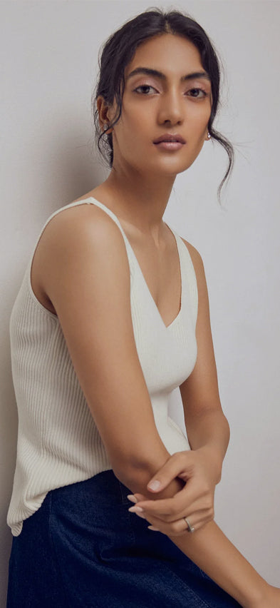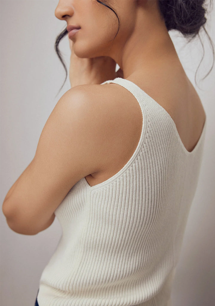 Beige High Neck Knit Vest