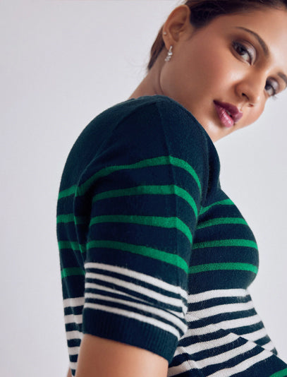 Aqua Gingham Peter Pan Collar Top
