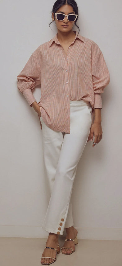 Apricot Striped Oversized Shirt