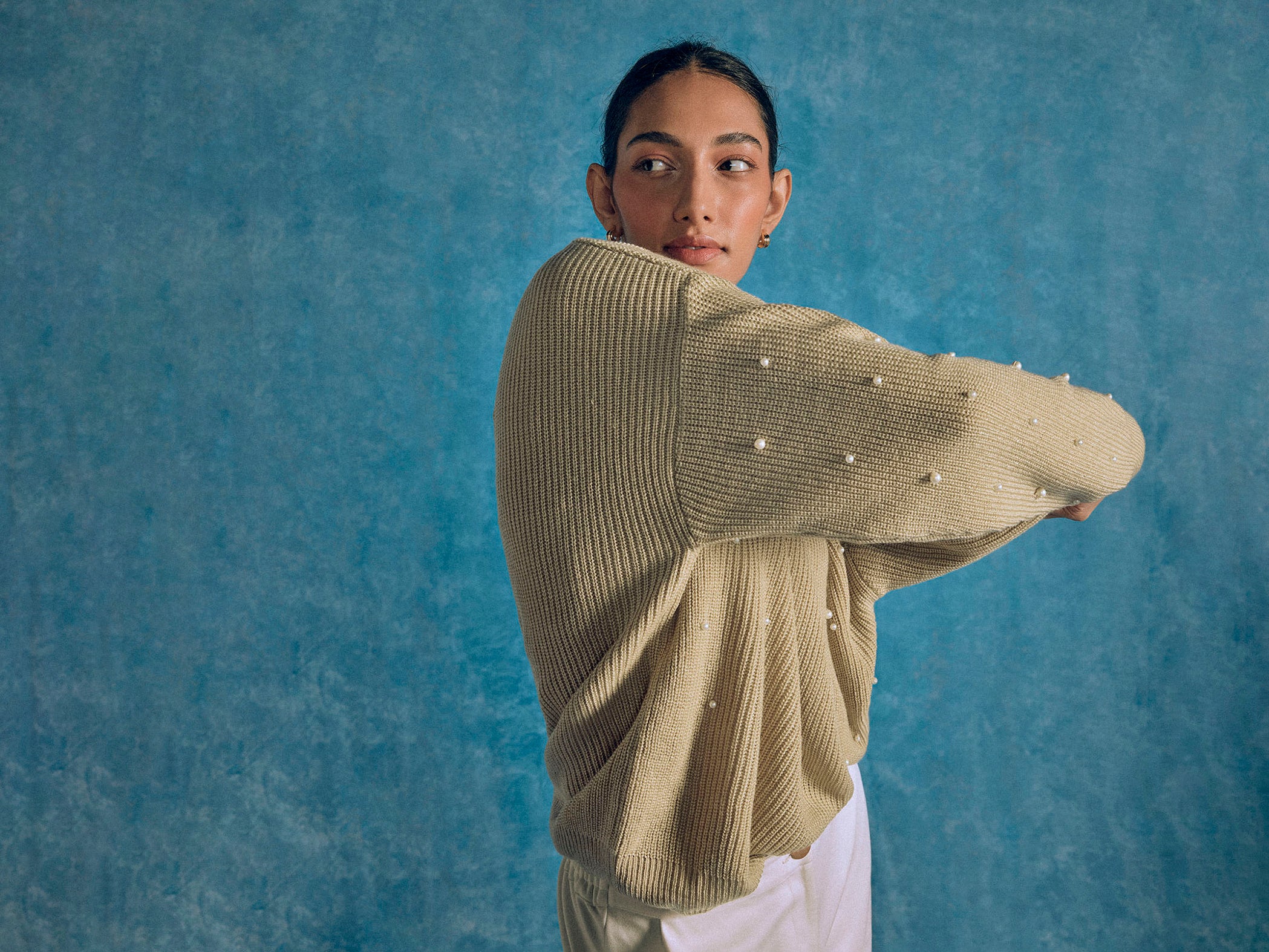 Light Khaki Pearl Beaded Jumper -