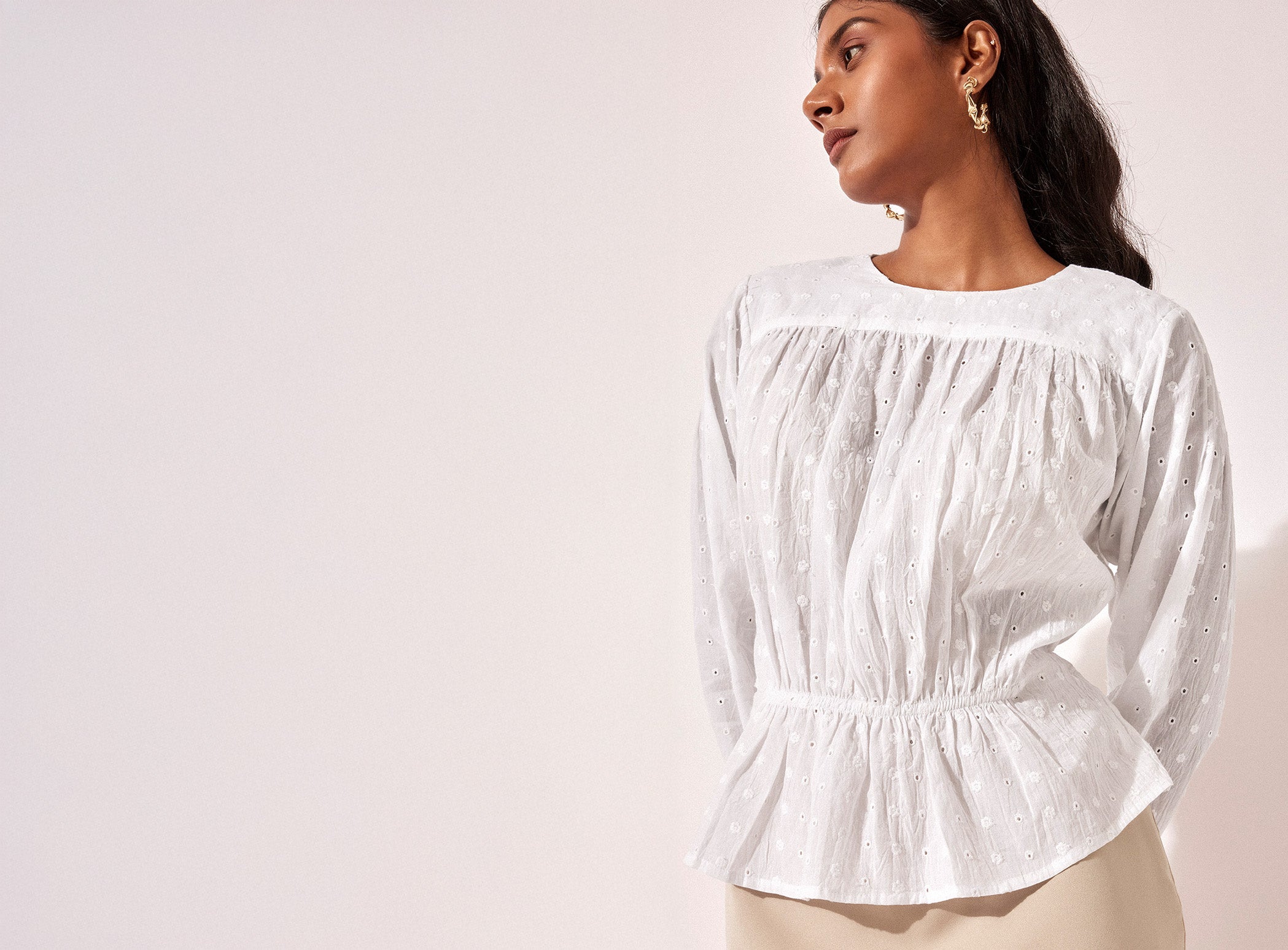 White Schiffli Elasticated Waist Top -
