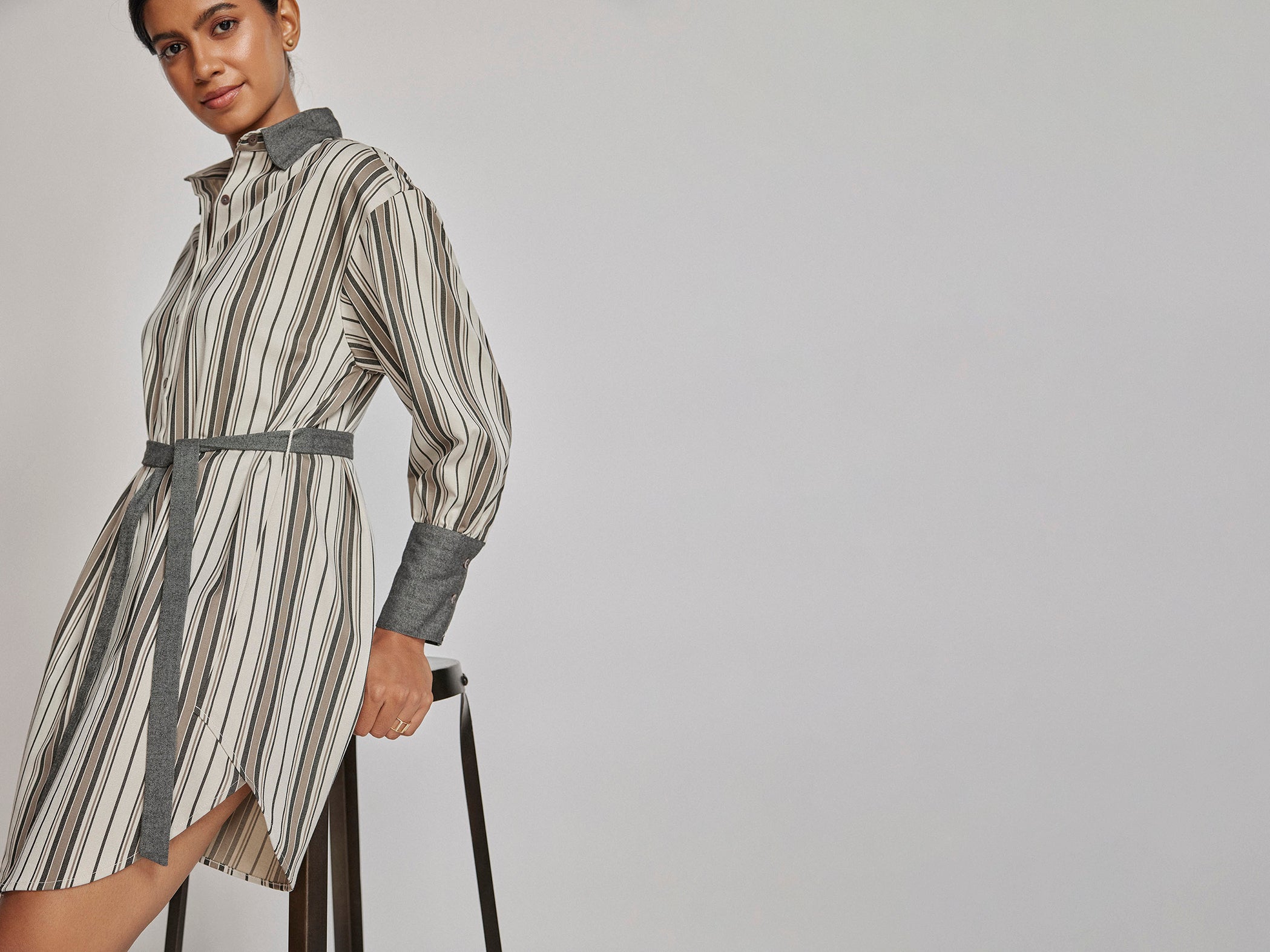 Sky Striped Wrap Tie Shirt Dress -