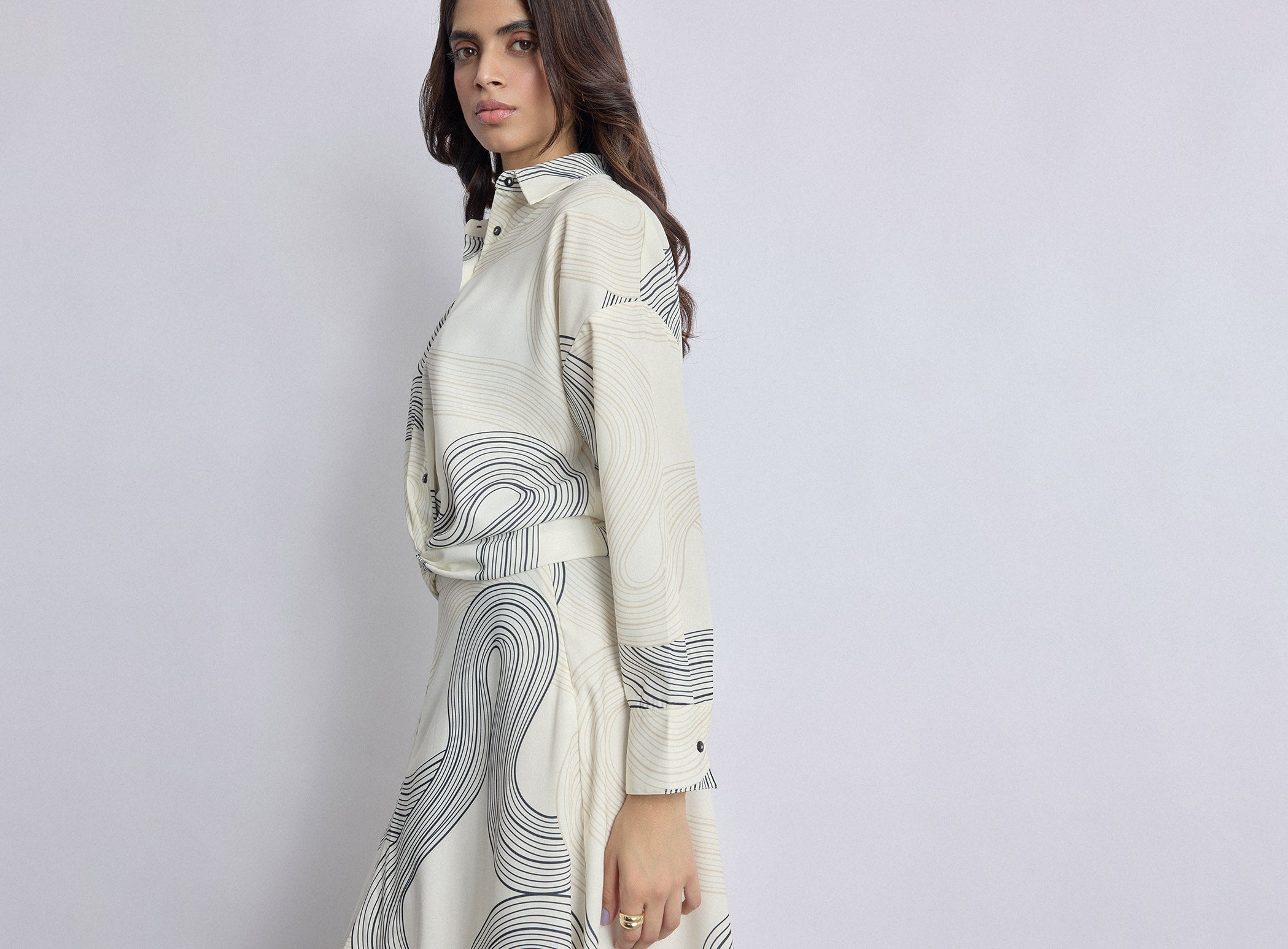 White Groovy Print Twist Hem Shirt -